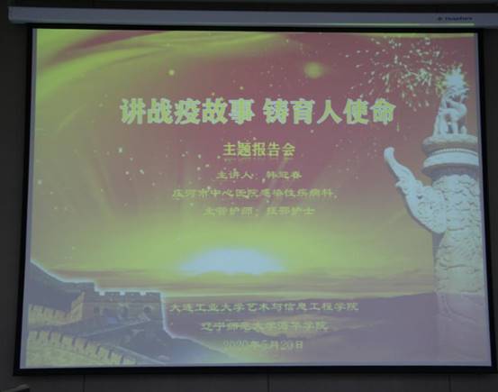 为进一步激发全校教职工的育人使命,自觉增强立德树人、教书育人的荣誉感和责任感,5月20日下午,学校在勤政楼报告厅举办“讲抗疫故事、铸育人使命”报告会,邀请庄河市中心医院援鄂医护人员讲述抗疫故事,分享抗疫经历。庄河市中心医院党委副书记王瑜,学校领导张向东、吴继君及在校、在庄教职工在主会场参加报告会,其它教职工通过线上视频方式收听收看。报告会由常务副院长张向东主持。