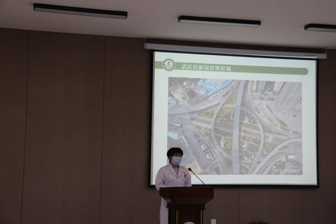 报告会上,庄河市中心医院感染性疾病科主管护师,援鄂护士韩迎春,庄河市中心医院呼吸与危重症医学一科副主任医师,援鄂医生代茹玲分别讲述了她们千里驰援武汉抗疫的心路历程,日夜奋战在雷神山医院患者救治一线的感人故事和坚守在决胜之地最前沿的医者仁心。一段段质朴感人又饱含力量的抗疫故事深深感动了每一位教工,主会场参会人员全体起立,用掌声向在场的庄河市中心医院的6位“最美逆行者”致敬。