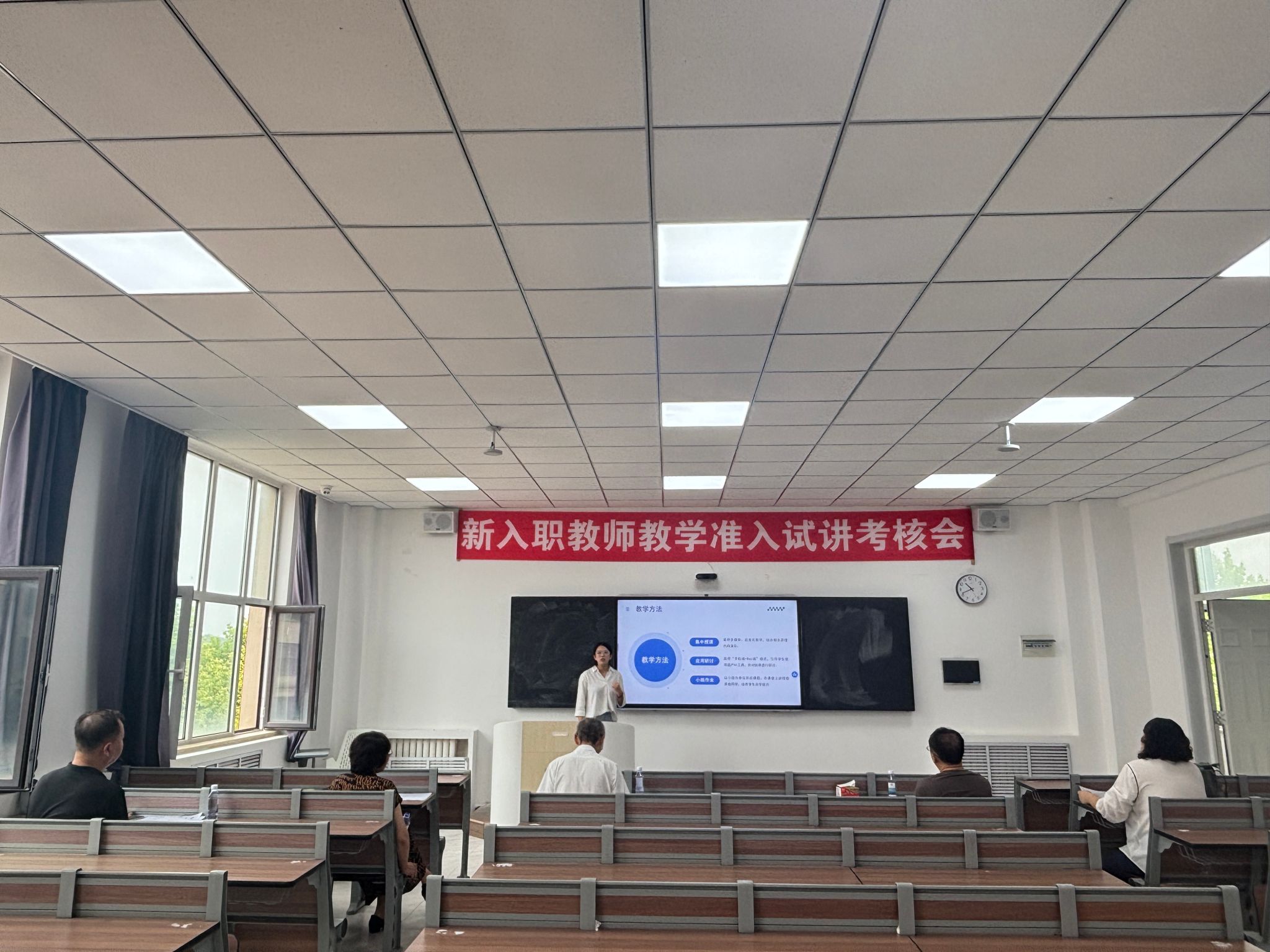考核过程严谨规范,每位教师需在20分钟内完成“说课+讲课”环节。考核过程可以看到,青年教师准备充分,教学设计合理,教态自然大方,展现出较为扎实的专业功底和良好的教学潜质,顺利通过考核,获得课堂教学准入资格,并得到了评委的一致认可。