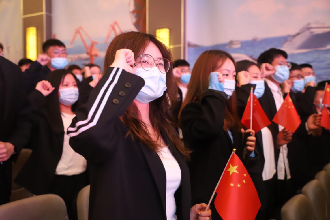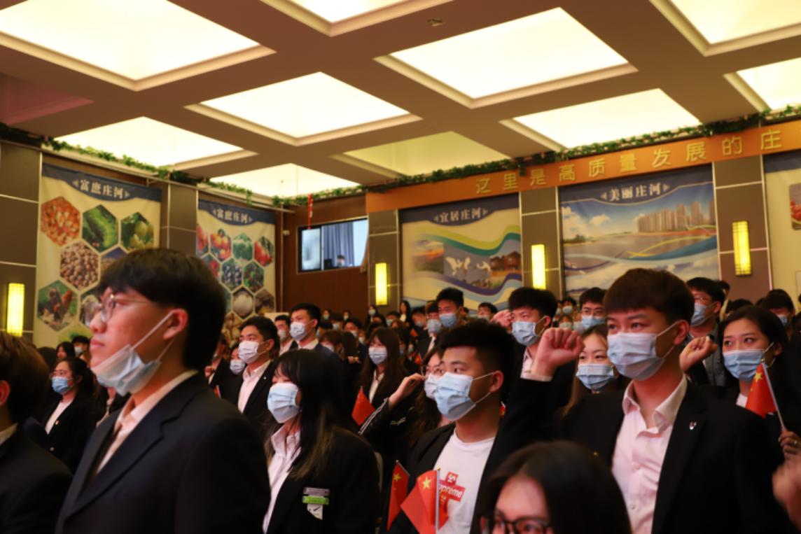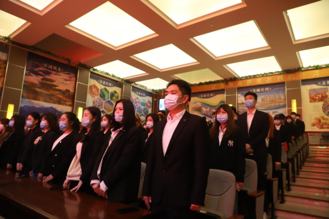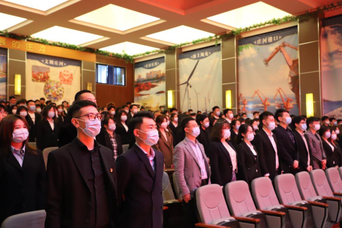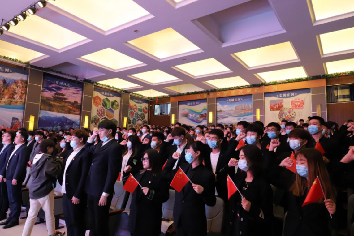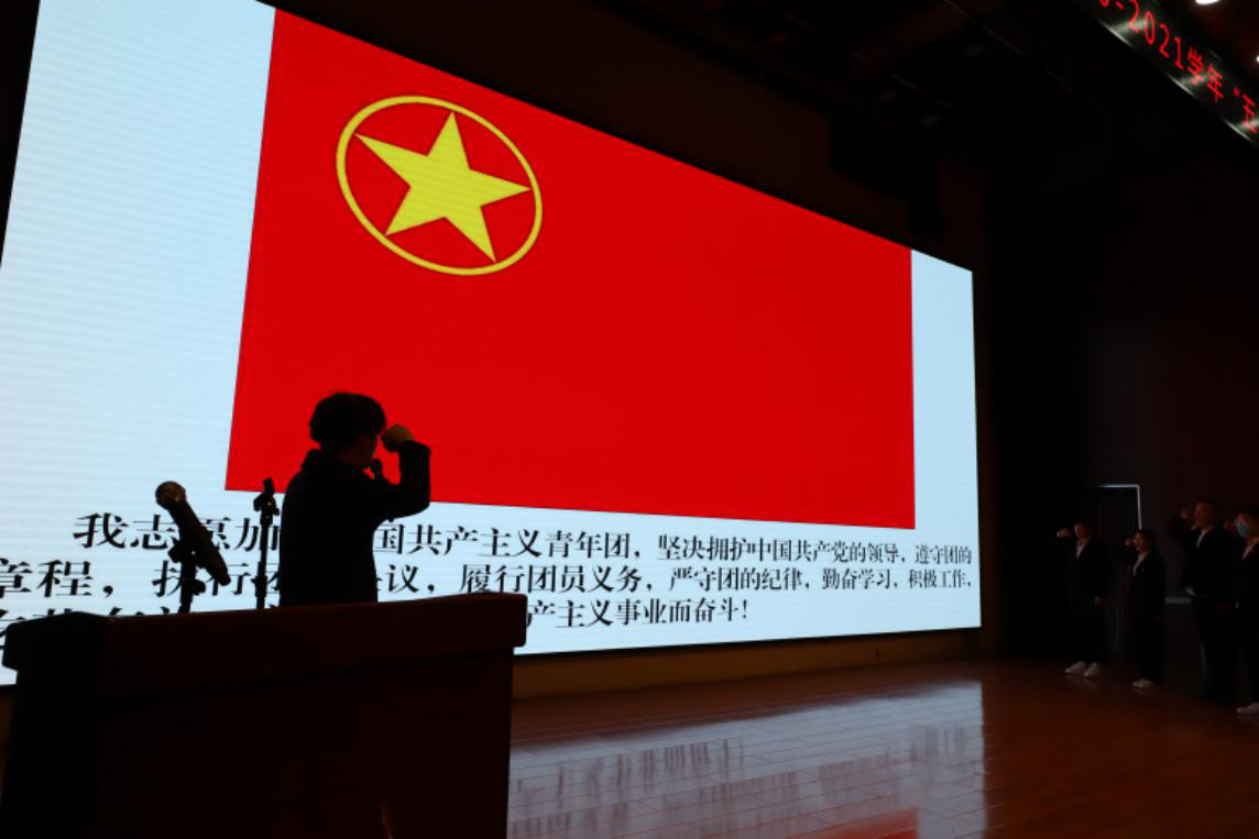 大会上团员青年重温入团誓词,同唱中国共产主义青年团团歌《光荣啊,中国共青团》。
