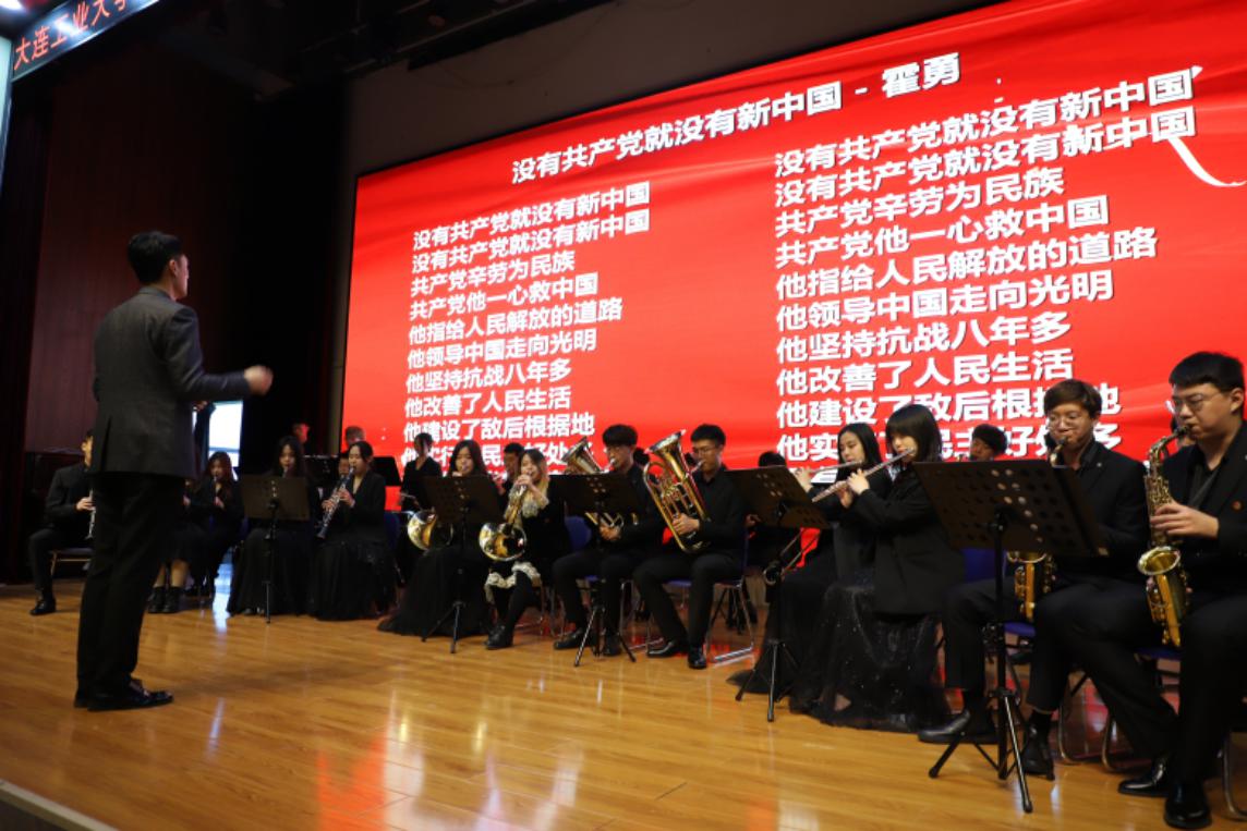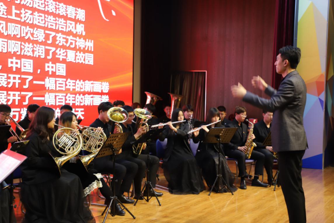 学校管乐团演奏《没有共产党就没有新中国》、《春天的故事》,与会师生大合唱,本次表彰大会圆满落下帷幕。