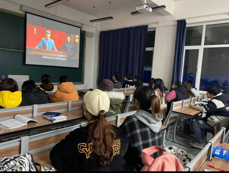 举办心理沙龙,各系组织学生在多媒体教室观看红色经典电影。通过观看红色电影,感受革命先烈的艰难历程,引导学生把革命精神融入到学习和生活中,培养学生革命乐观心态。