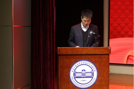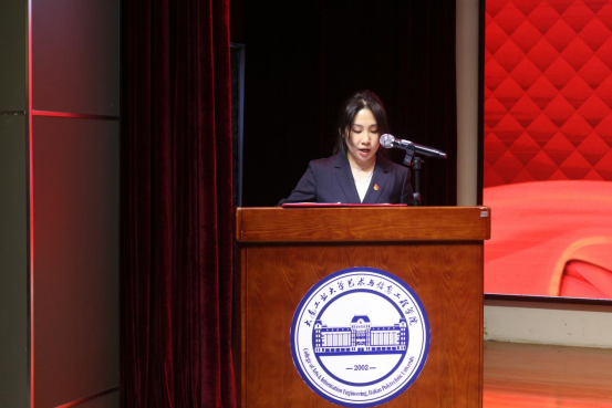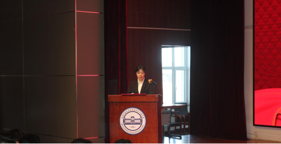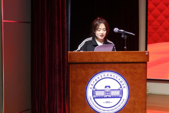 学生处学生事务中心主任康慧萍宣读《“博学静思树学风 笃行致新育良才”学风建设主题活动实施方案》