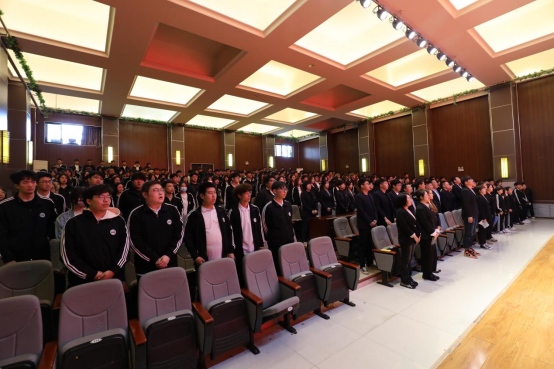 大会在庄严肃穆的国歌声中拉开序幕,全体师生起立,齐唱国歌。