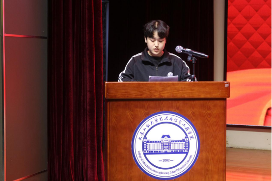 获得辽宁省政府奖学金学生代表:信息工程系自动化专业2020级白俊杰同学发言。