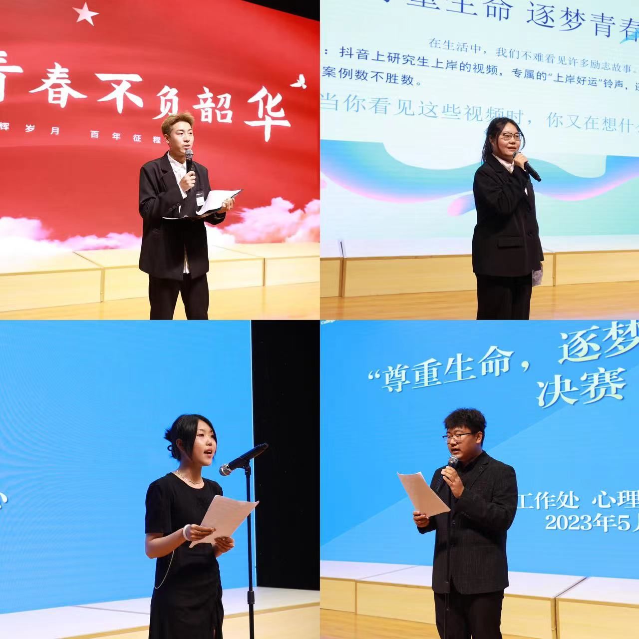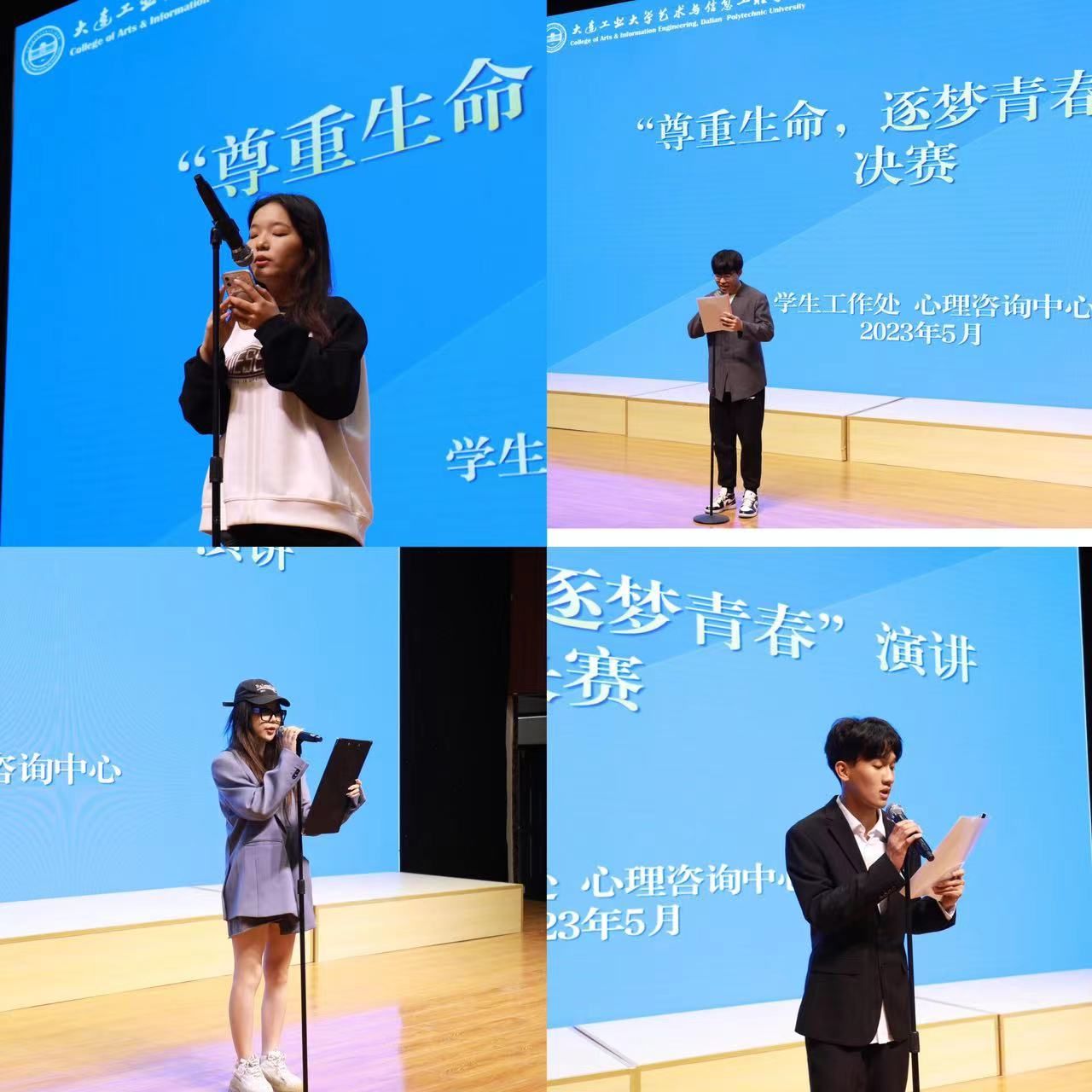 为贯彻落实辽宁省教育厅《关于开展2023年辽宁省高校“5·25”大学生心理健康月活动的通知》(辽教办[2023]31号)文件精神,营造良好的心理文化氛围,帮助学生感悟生命成长,探寻人生意义,树立正确生命价值观,启发和引导学生关注心理健康,并了解更多的心理健康知识,创新beat365学生心理健康教育内容形式。beat365于5月24日下午举办“尊重生命 逐梦青春”心理健康演讲比赛。