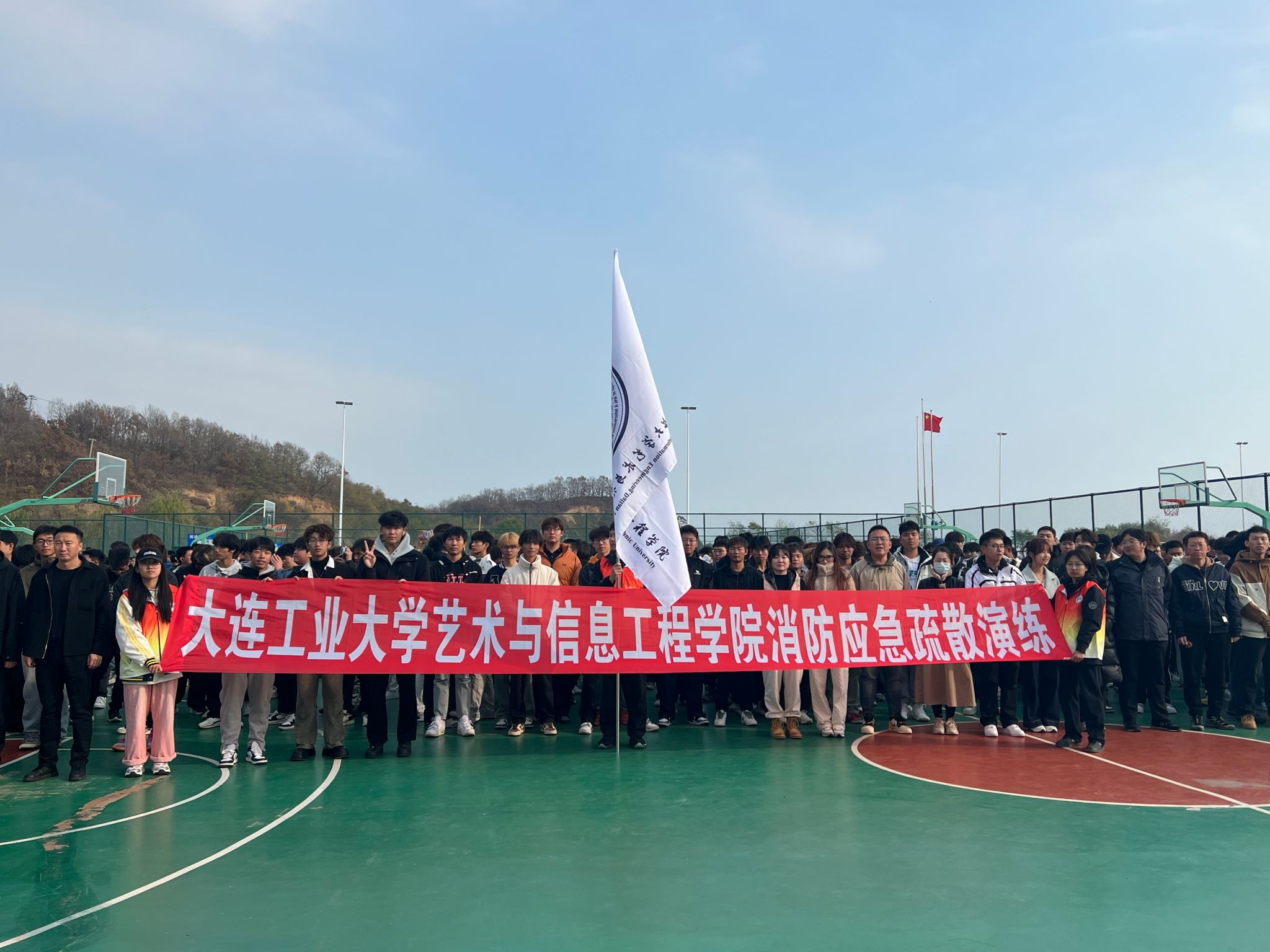 在“11· 9国家消防日”来临之际,beat365联合庄河市消防大队、后勤集团相关部门,于11月7日13:00组织开展消防应急疏散与灭火演练活动,学校保卫处、学生处、各学院学生工作副院长、2024级辅导员及近1000名学生参加演练活动。