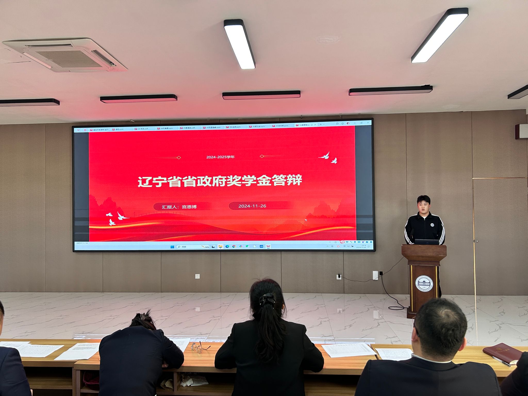 按照评审程序,秉持公平、公正、公开的评审原则,经过学生个人申报、各学院资助评审工作小组初审、学生处学生资助管理中心审核,共有13名同学参加本次评审答辩会。在答辩环节,参评学生从理想信念、学习成果、创新实践、志愿服务、文体活动、综合素养等多方面展开陈述,多维度展示了个人风采。他们秉持着“博学精思,笃行致新”的校训精神,不仅在学业上拼搏进取、勇攀高峰,在社会实践、各项竞赛中也大放异彩。