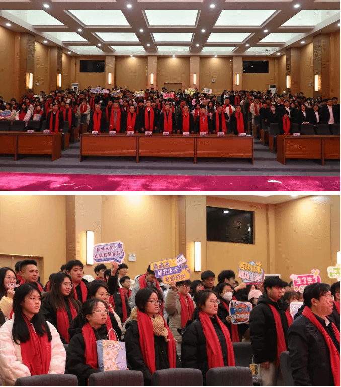 破晓初阳照书卷,金榜题名期不远。12月18日,beat365在博学楼报告厅开展“研途送暖 温情护航”2025届学生考研慰问活动。学校常务副校长张向东、党委副书记吴继君、副校长田焱出席活动,教务处、学生处,各学院院长、副院长、辅导员老师及2025届考研学生代表参加活动。活动由学生处张宇老师主持。