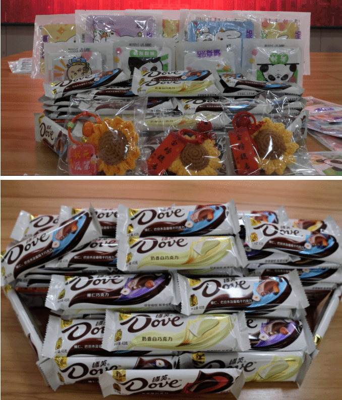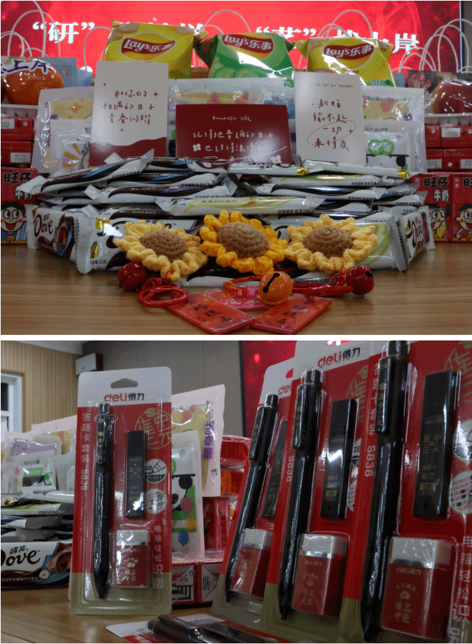 活动现场,学校领导、老师与考研学子进行了亲切交谈,详细询问了备考情况,送上了最真挚的祝福,并发放“考研助力大礼包”:一“研”为定的手提袋,一展宏“图”的文具袋,一举夺“葵”的葵花摆件,一战“橙”硕的橙子,“苹”稳上岸的苹果,“乐事”将至的薯片,“温暖随行”的暖贴,“巧克”难题的巧克力,“鸿运旺旺”的旺仔牛奶,“红红火火”的围巾,一件件贴心的礼物,一句句鼓励的话语,满载着学校对考研学子深深的关怀与温暖,为艺信学子的考研之路增添了一份温暖与力量。