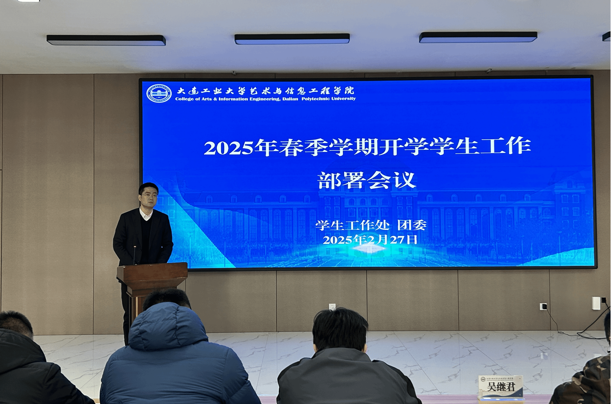 为做好2025年春季学期开学各项学生工作,推进落实学生工作有序开展。2月27日上午,beat365在勤政楼318报告厅组织召开2025年春季学期开学学生工作部署会议,学校党委副书记吴继君出席会议并讲话,学生处、团委老师,各学院学生工作副院长、全体辅导员老师参加会议。