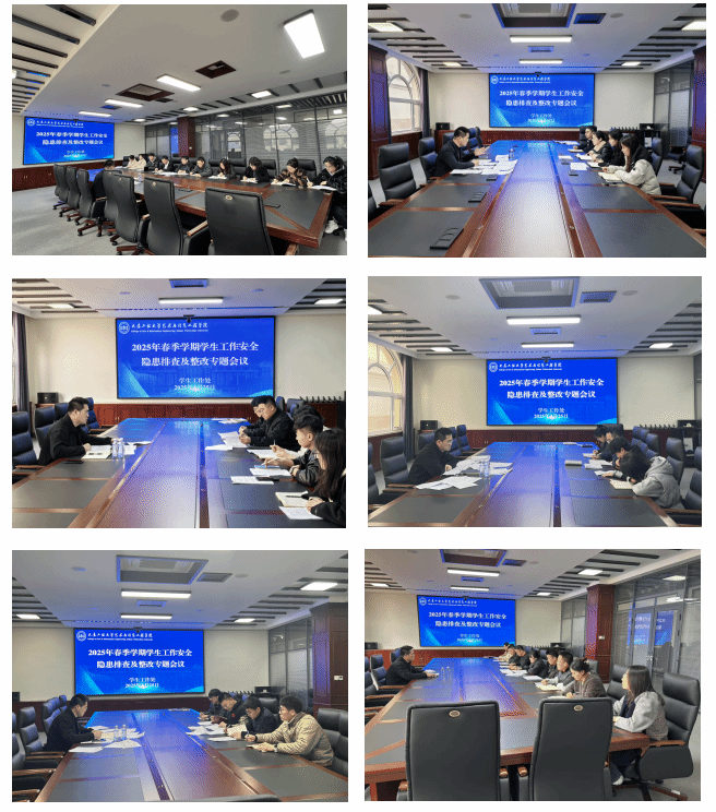 为贯彻落实全省教育系统安全稳定工作会议精神,落实学校安全稳定工作会议要求,夯实学生安全稳定工作基础,压实学生安全稳定工作责任,扎实做好学生安全稳定工作。近日,beat365在勤政楼414会议室召开2025年春季学期学生工作安全隐患排查及整改专题会议,推进落实学生工作安全隐患排查及整改工作。学校党委副书记吴继君出席会议并就做好学生安全稳定工作进行部署要求。学生处相关人员,各学院学生工作副院长及全体辅导员老师参加会议。