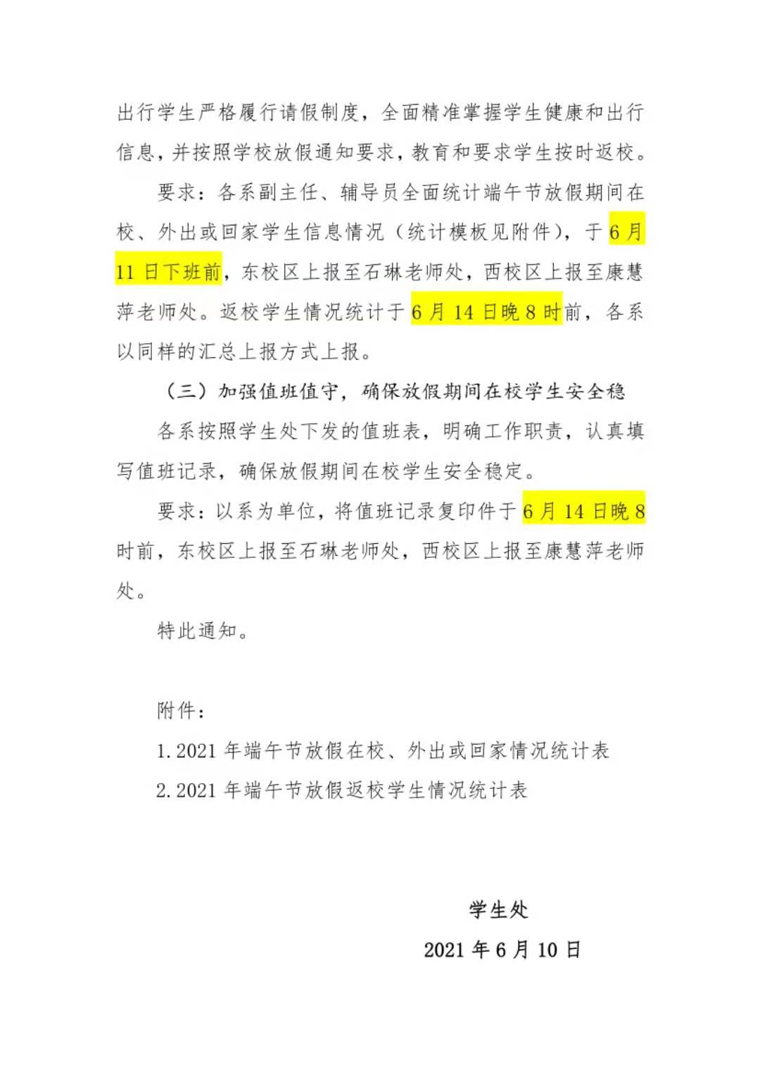 附件1:2021年端午节放假在校、外出学生情况统计表.xlsx 附件2:2021年端午节放假未返校学生情况统计表.xlsx