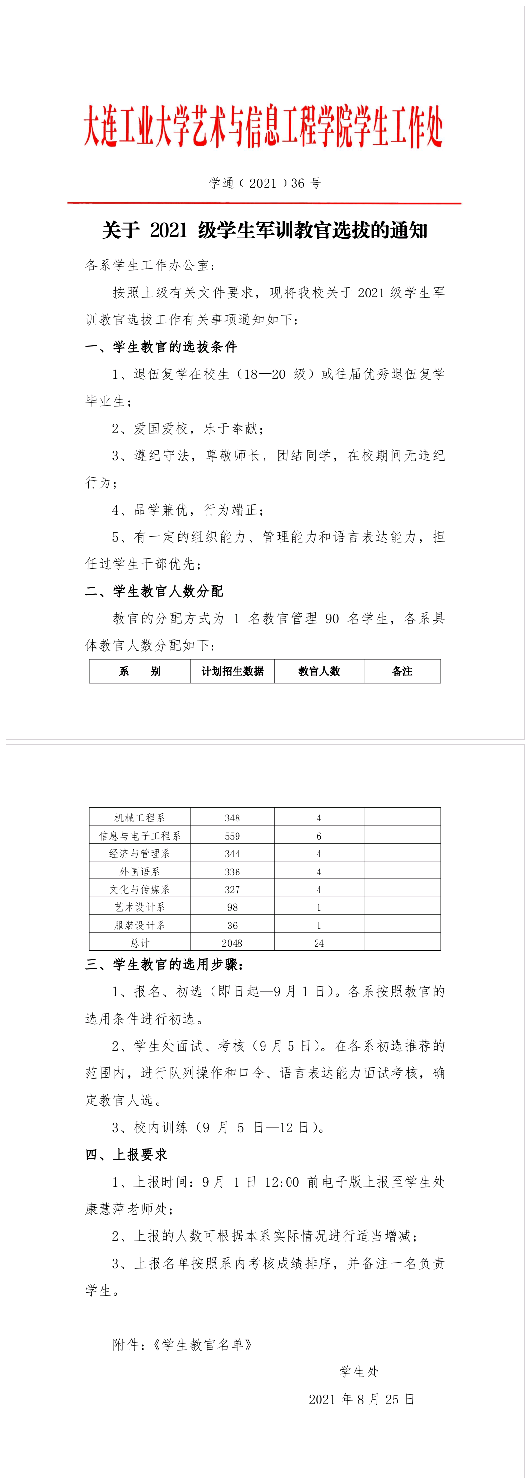 2021级学生军训教官选拔方案 附件.doc