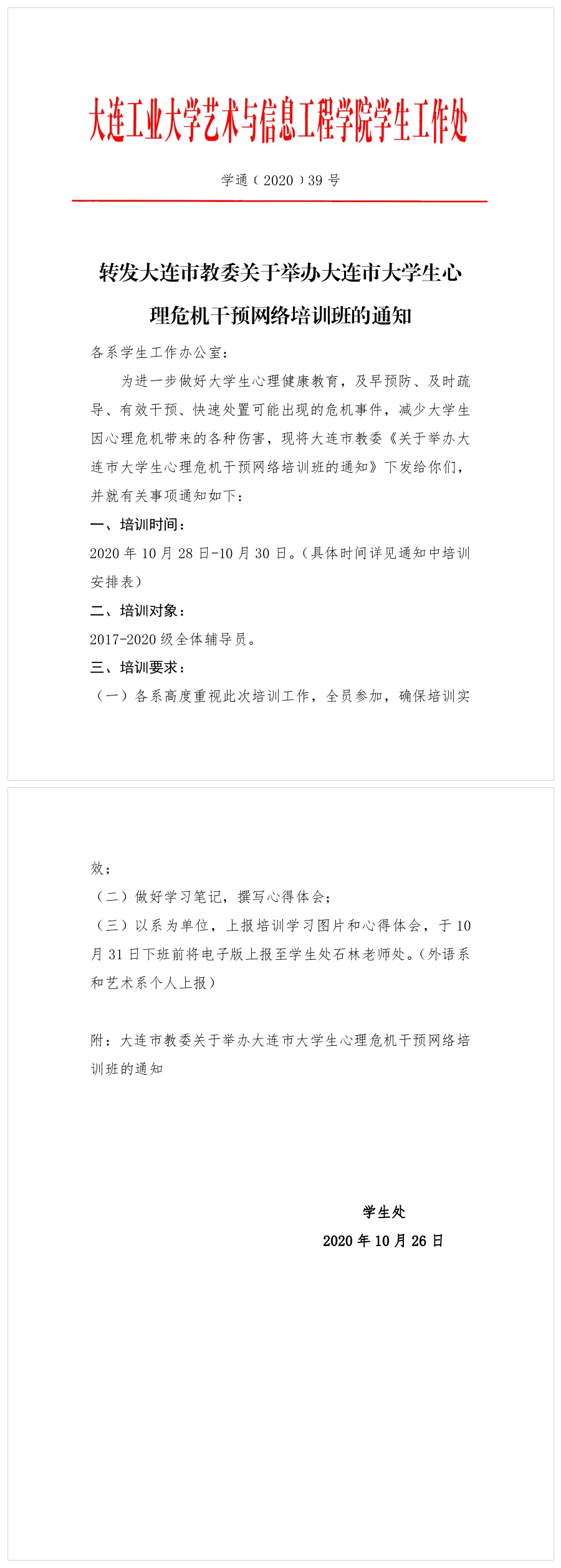关于转发大连市教委《关于举办大连市大学生心理危机干预网络培训班的通知》.pdf