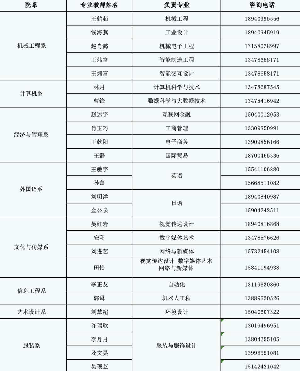 四、分系分专业招生咨询电话