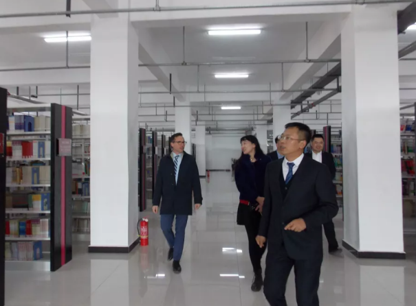 签约仪式后,张向东院长陪同马克·戴利教授参观了学院教学楼、图书馆、体育场、学生公寓等设施,戴利教授对我院完备的办学设施和优美的校园环境给予了高度评价。