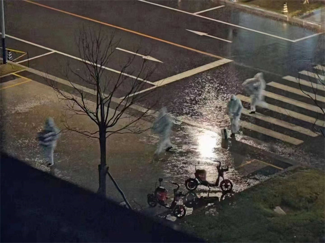 11月7日傍晚,一场寒风冷雨降临庄河,为疫情后勤保障工作增加难度。天色越深 ,气温越低。但是艺信人没有退缩。