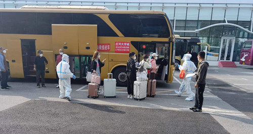 同学们有序通过返校报到专用通道