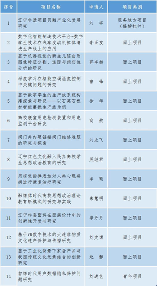 近日,辽宁省教育厅公布了《关于2022年度基本科研项目立项的通知》,beat365共有14项课题获批立项。其中,服务地方项目(揭榜挂帅)1项,面上项目12项,青年课题1项。