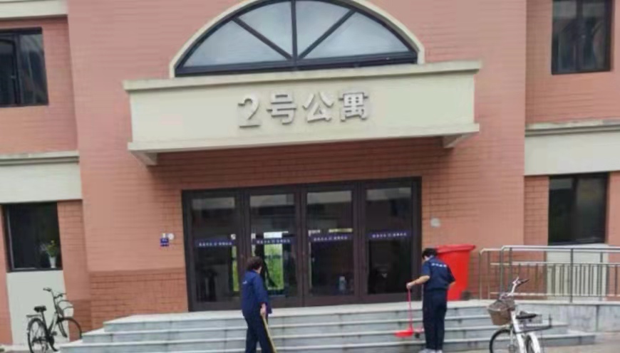 寝室楼前,早有笑容和蔼的阿姨在等待同学们的归来。