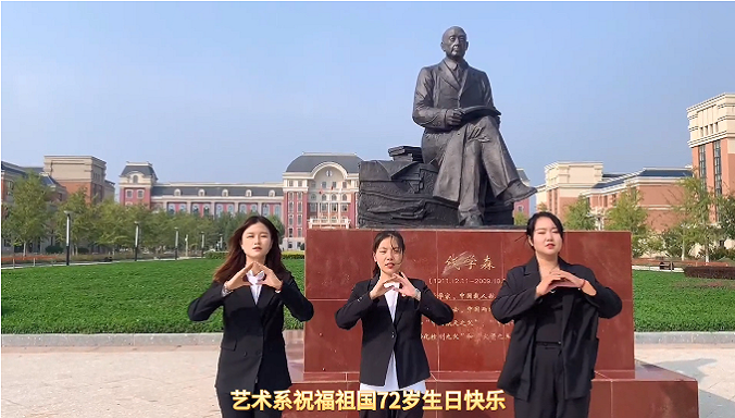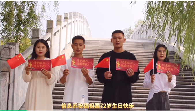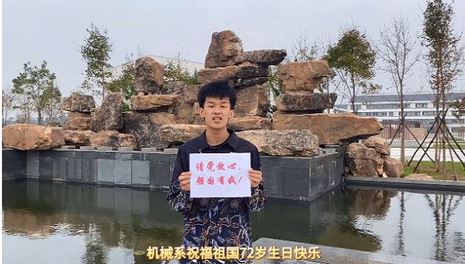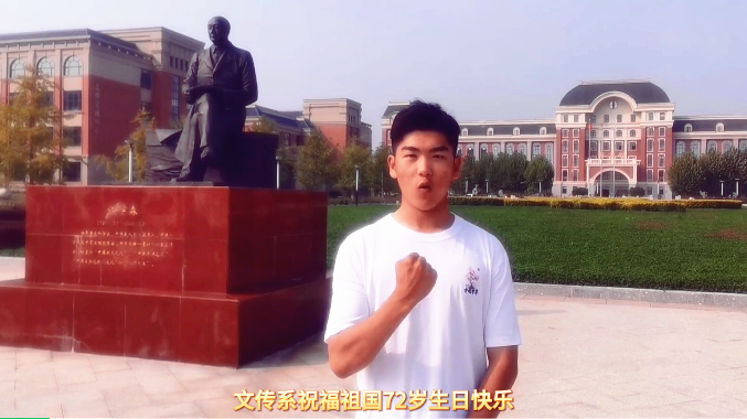 在这个特别的日子,丁佳兴同学作为新生代表在国旗下代表新生讲话。除了丁佳兴同学外,各系也用了最朴实的方式,最真挚的情感在祖国母亲生日之日送上了生日祝福。