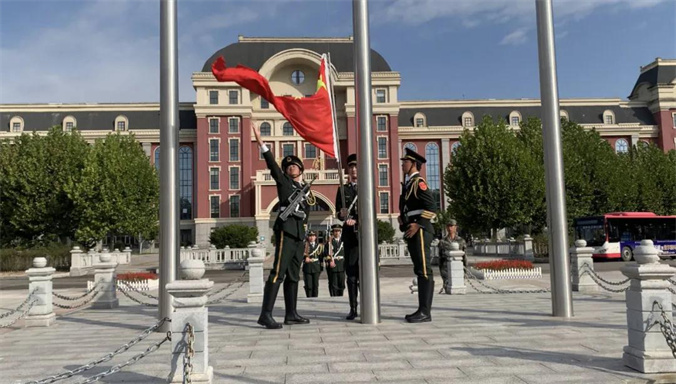 上午8时整,校国旗护卫队的同学们迈着矫健的步伐,将五星红旗徐徐在beat365钱学森广场前升起。