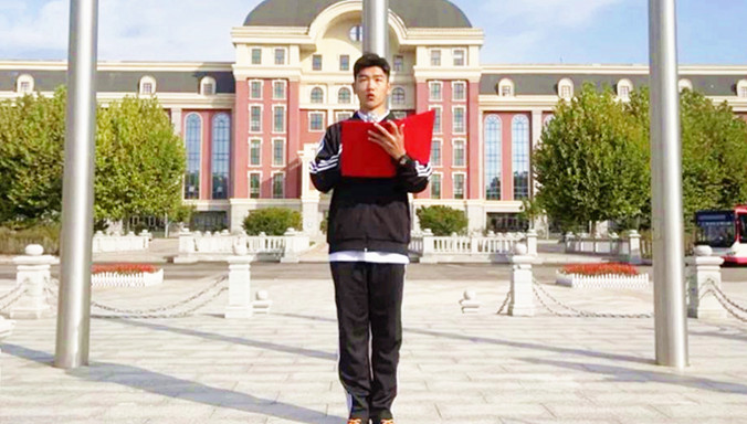 新生代表丁佳兴同学在国旗下讲话