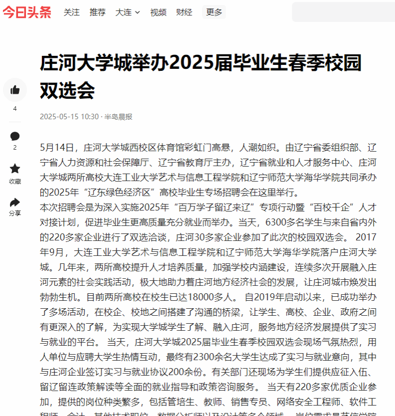 四、【媒体关注】庄河大学城举办2025届毕业生春季校园双选会(今日头条)