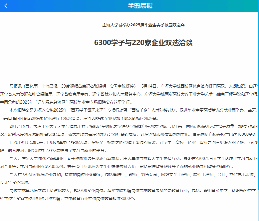 七、【媒体关注】庄河大学城举办2025届毕业生春季校园双选会(大连日报)