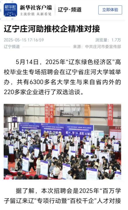 六、【媒体关注】庄河大学城举办2025年“辽东绿色经济区”高校毕业生专场招聘会(庄河发布)